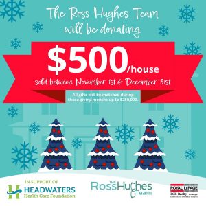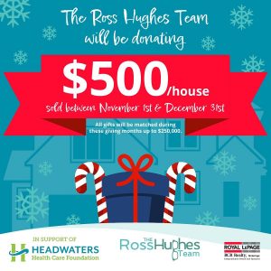 It’s Giving Season! The Ross Hughes team will be donating $500 of every house sold from November 1 to December 31 to the Headwaters Health Care Foundation to support the purchase of urgently needed equipment. Now you can do good and achieve your real estate goals, all at the same time!