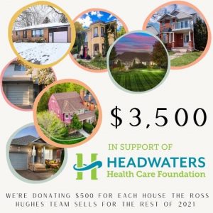 NEW MILESTONE REACHED! We’ve donated $3500 to the Headwaters Health Care Foundation to support the purchase of urgently needed medical equipment! That’s the result of our initiative to donate $500 from every house the Ross Hughes Team sells up until Dec. 31, 2021. What will the final tally be?